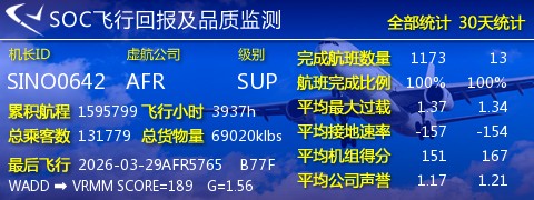{"pie_crafttype":[{"label":"B738 (1587)","data":"1587"},{"label":"B77F (1180)","data":"1180"},{"label":"B77W (733)","data":"733"},{"label":"B73F (397)","data":"397"},{"label":"B739 (20)","data":"20"},{"label":"B74D (16)","data":"16"},{"label":"B77L (5)","data":"5"}],"pie_rep":[{"label":">1.4 (284)","data":"284"},{"label":"1.0~1.4 (687)","data":"687"},{"label":"0.6~1.0 (40)","data":"40"},{"label":"0.0~0.6 (66)","data":"66"},{"label":"<0 (96)","data":"96"}],"pie_score":[{"label":">120 (1105)","data":"1105"},{"label":"100~120 (48)","data":"48"},{"label":"80~100 (10)","data":"10"},{"label":"60~80 (5)","data":"5"},{"label":"<60 (5)","data":"5"}],"pie_gforce":[{"label":"<1.2 (216)","data":"216"},{"label":"1.2~1.4 (524)","data":"524"},{"label":"1.4~1.6 (293)","data":"293"},{"label":"1.6~1.8 (110)","data":"110"},{"label":">1.8 (30)","data":"30"}]}