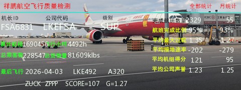 {"pie_crafttype":[{"label":"B738 (2042)","data":"2042"},{"label":"B77F (845)","data":"845"},{"label":"B77W (571)","data":"571"},{"label":"B737 (489)","data":"489"},{"label":"B73F (305)","data":"305"},{"label":"A320 (97)","data":"97"},{"label":"B77L (56)","data":"56"},{"label":"B788 (24)","data":"24"},{"label":"B739 (17)","data":"17"},{"label":"A359 (11)","data":"11"},{"label":"B744 (9)","data":"9"},{"label":"B38M (6)","data":"6"},{"label":"B74F (5)","data":"5"},{"label":"B77B (4)","data":"4"},{"label":"A319 (2)","data":"2"}],"pie_rep":[{"label":">1.4 (970)","data":"970"},{"label":"1.0~1.4 (961)","data":"961"},{"label":"0.6~1.0 (70)","data":"70"},{"label":"0.0~0.6 (115)","data":"115"},{"label":"<0 (213)","data":"213"}],"pie_score":[{"label":">120 (1389)","data":"1389"},{"label":"100~120 (520)","data":"520"},{"label":"80~100 (241)","data":"241"},{"label":"60~80 (113)","data":"113"},{"label":"<60 (66)","data":"66"}],"pie_gforce":[{"label":"<1.2 (664)","data":"664"},{"label":"1.2~1.4 (914)","data":"914"},{"label":"1.4~1.6 (466)","data":"466"},{"label":"1.6~1.8 (187)","data":"187"},{"label":">1.8 (98)","data":"98"}]}